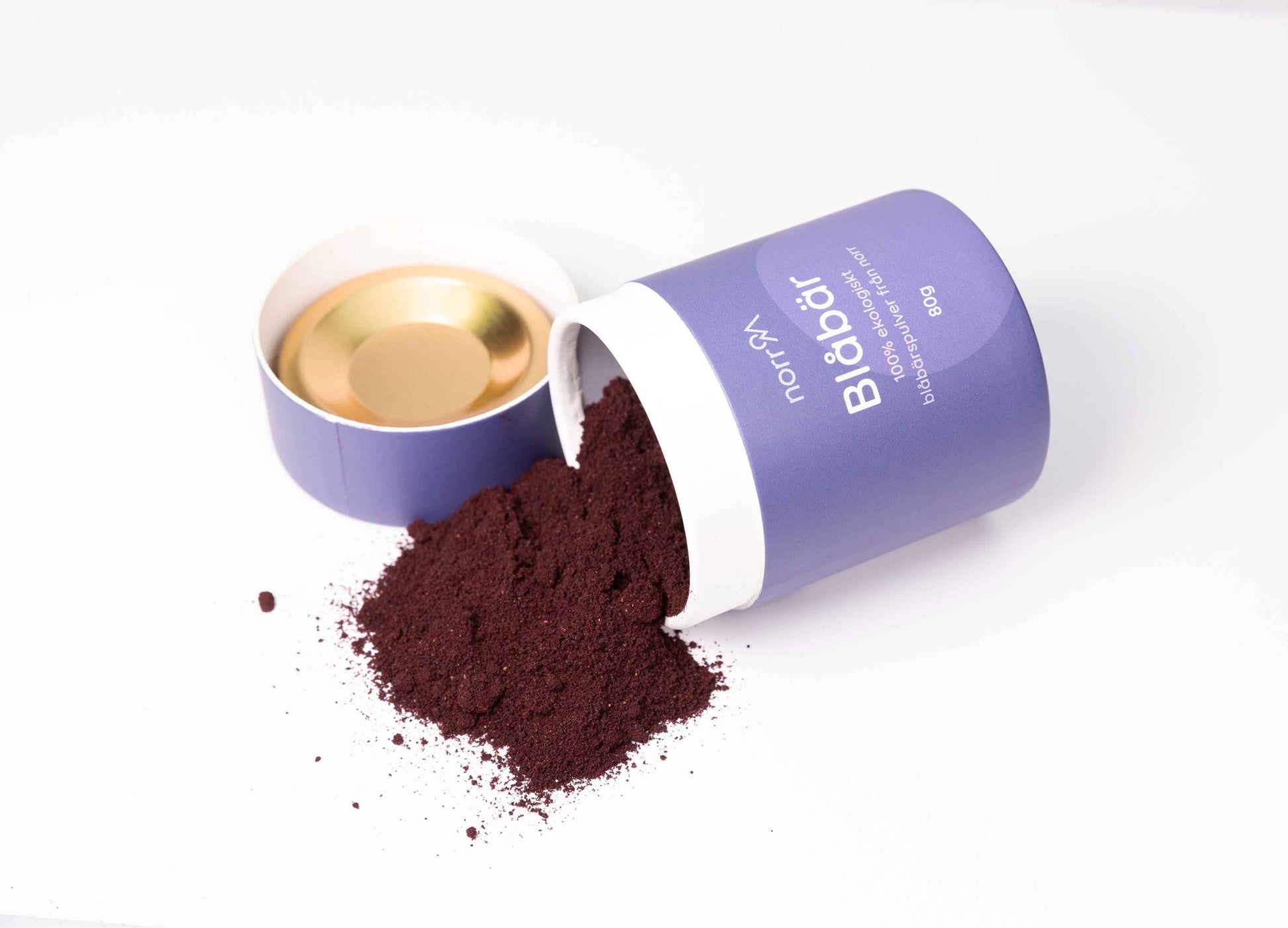 Norroms bärpulver är 100 % finmalda bär. För att undvika att bärpulvret spills så bör du vara försiktig när du öppnar burken. Håll den upprätt och skruva försiktigt upp ytterlocket. Pilla sedan upp metall-locket, som sitter fast med två små genomskinliga tejpetiketter.